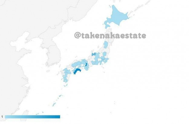 アクセスして下さる方の地域分布を見ることができます。今月の日本をアップしてみるとこんな感じでございます。濃くなっている地域ほどたくさん見て下さっているということですね。やっぱり高知県の方が1番多く、大阪、富山と続きます。